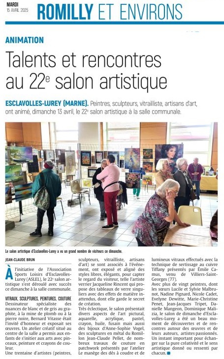 - Esclavolles-Lurey (51) Salon d'art invité d'honneur le 12 et 13/04
